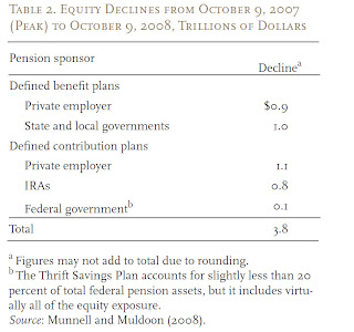 Between October 9, 2007 and October 9, 2008, the value of equities in retirement plans dropped by about $4 trillion, with the decline divided equally between defined benefit and 401(k)/Individual Retirement Accounts (IRAs). The decline in the defined benefit arena was in turn divided equally between private sector plans and those sponsored by state and local governments. This brief explores what a loss of roughly $1 trillion of private sector defined benefit equities means for the individual participants and for the firms that sponsor those plans.